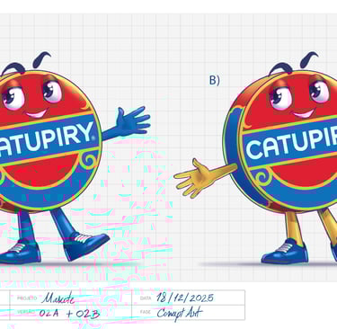 Na Movement, o processo de design começa com um estudo aprofundado da marca, analisando elementos como identidade visual, cores, posicionamento e público-alvo. No caso do mascote inspirado no produto Catupiry, buscamos transformar um item já conhecido em um personagem carismático, reconhecível e com forte apelo emocional.